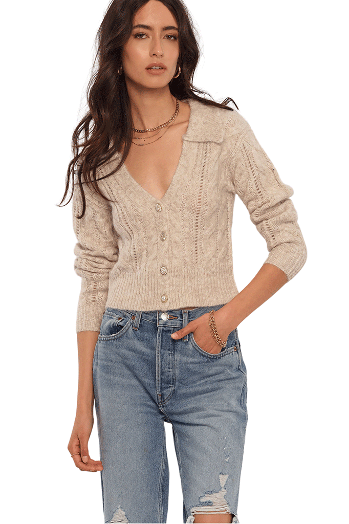 ELYSE CABLED FRINGE SWEATER CARDIGAN