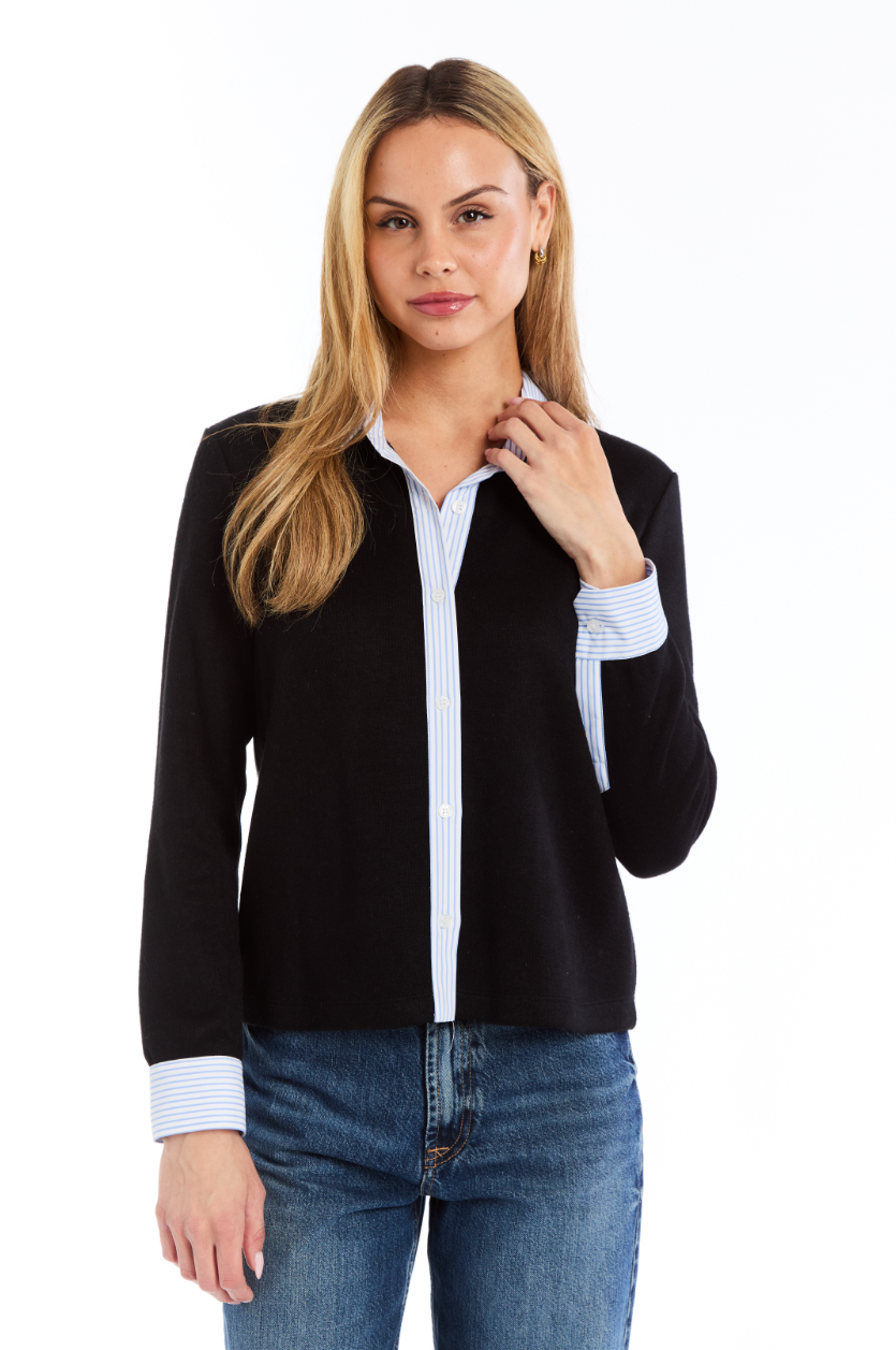 Shirt with blue stripe cuffs