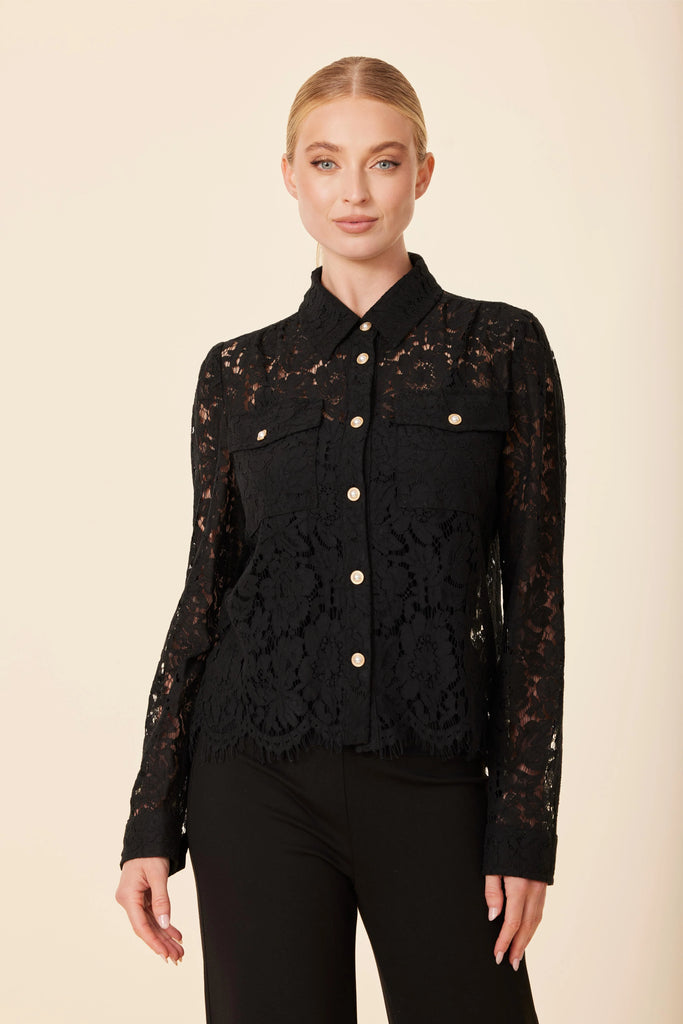 FAUX LEATHER ELASTIC CUFF BLOUSE