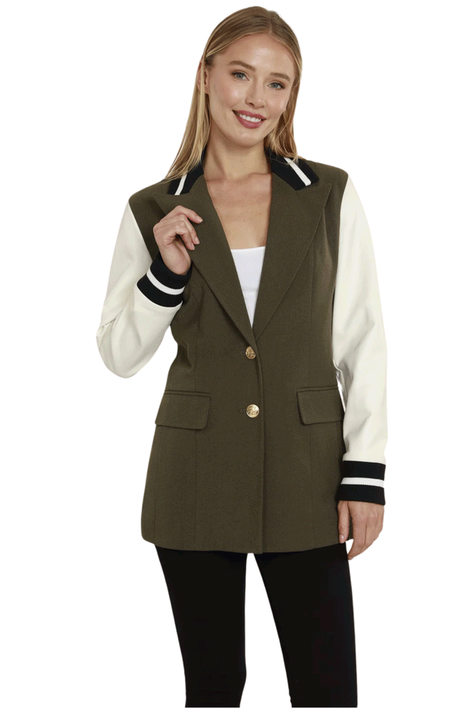 FAUX LEATHER SLEEVE VARSITY JACKET