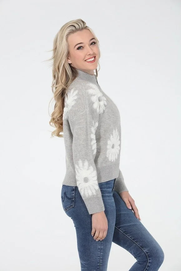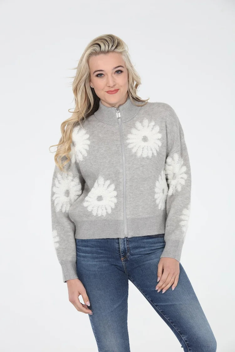 The Blossom Floral Sweater Jacket: This cozy zip-up jacket features a high neck and beautiful floral patterns, combining comfort and elegance