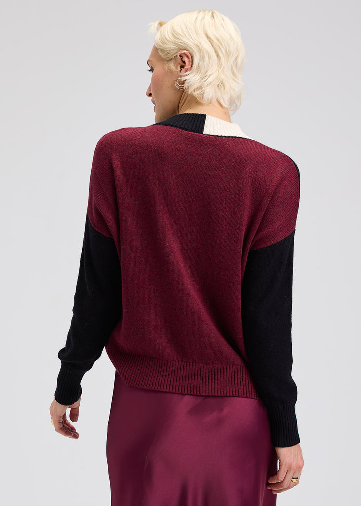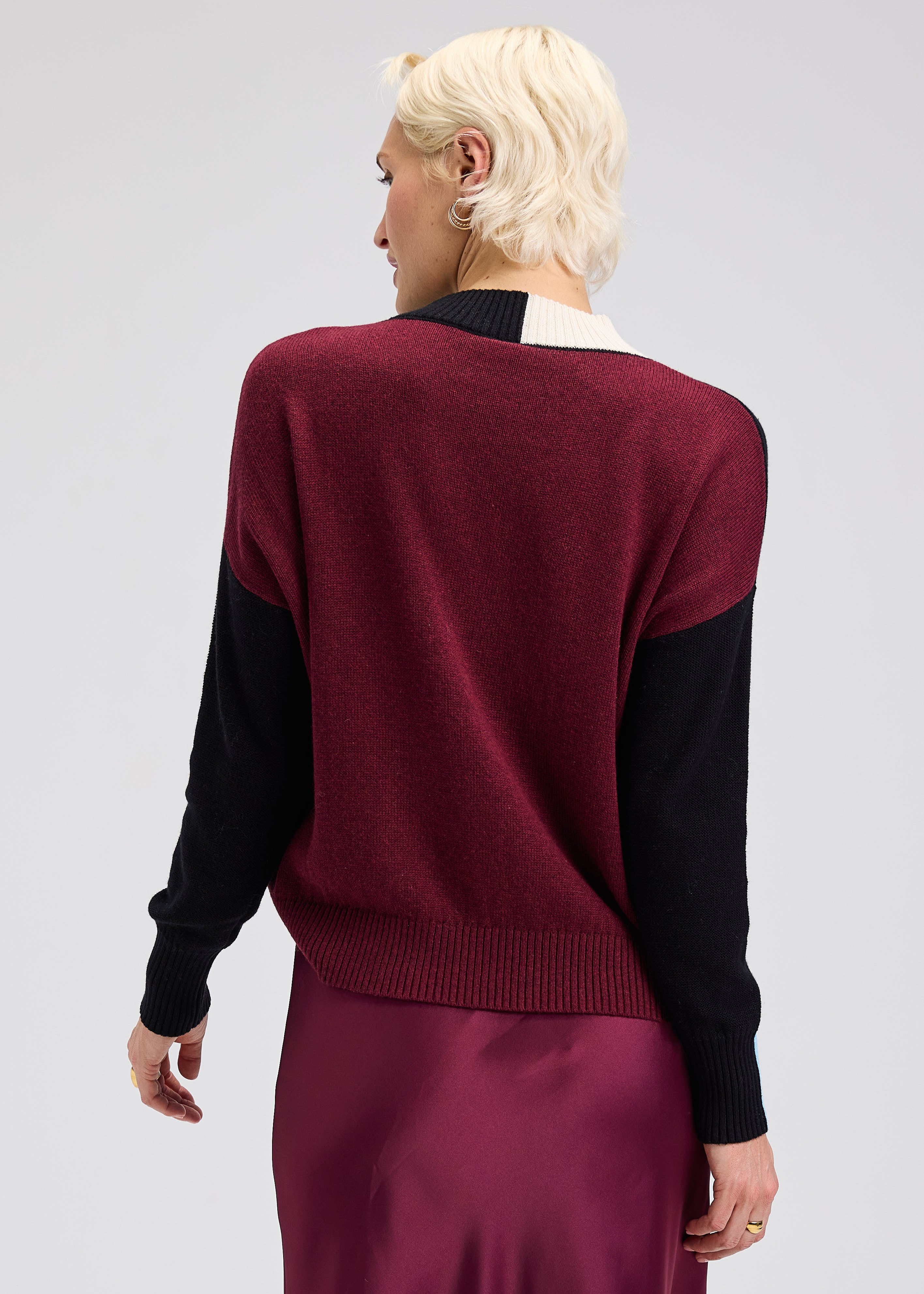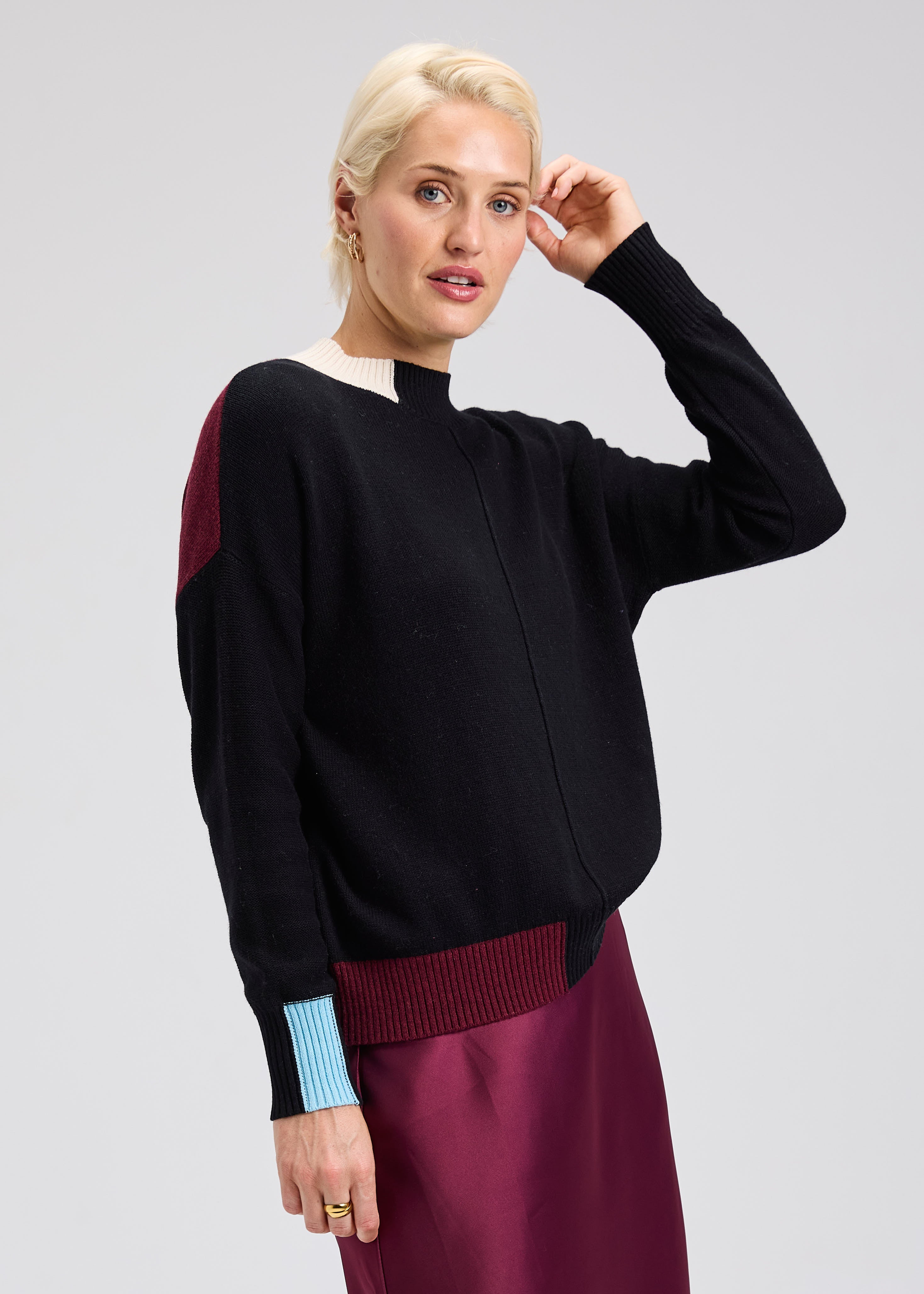 High neck sweater with color block detailing