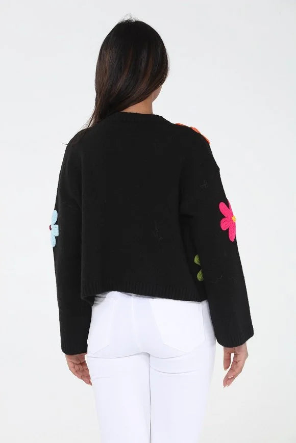 The Marigold Flower Cardigan: Add a playful touch to your wardrobe with its fun floral design and cozy feel, perfect for any season.