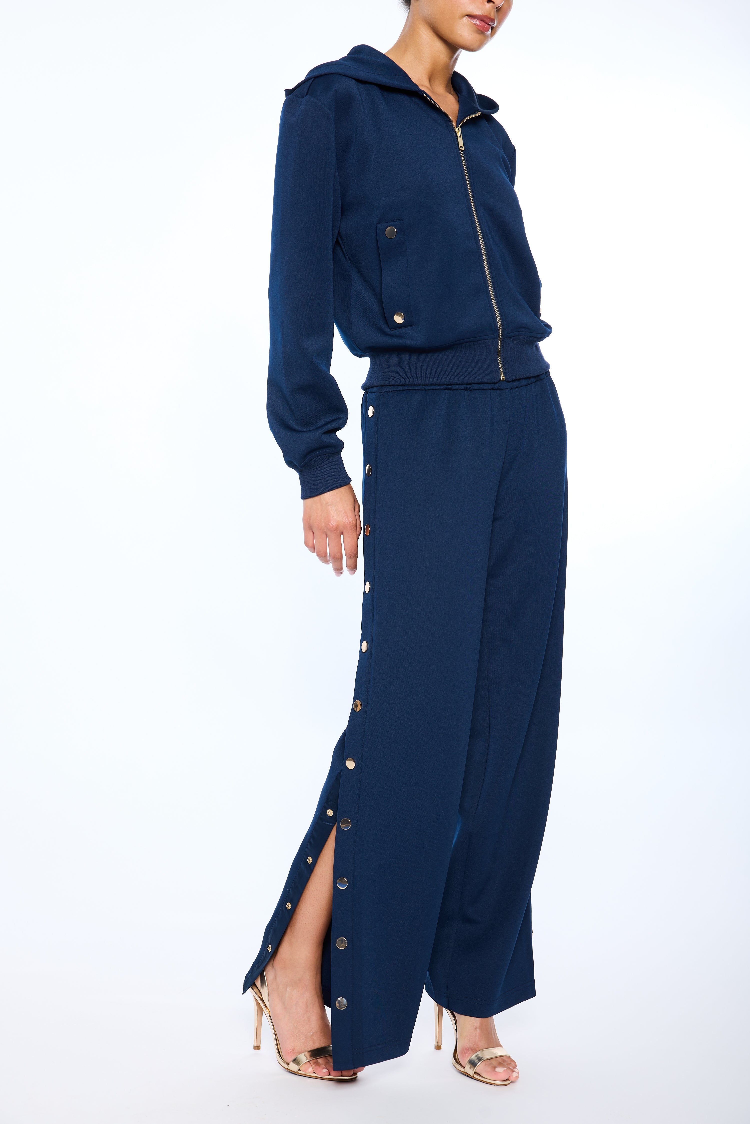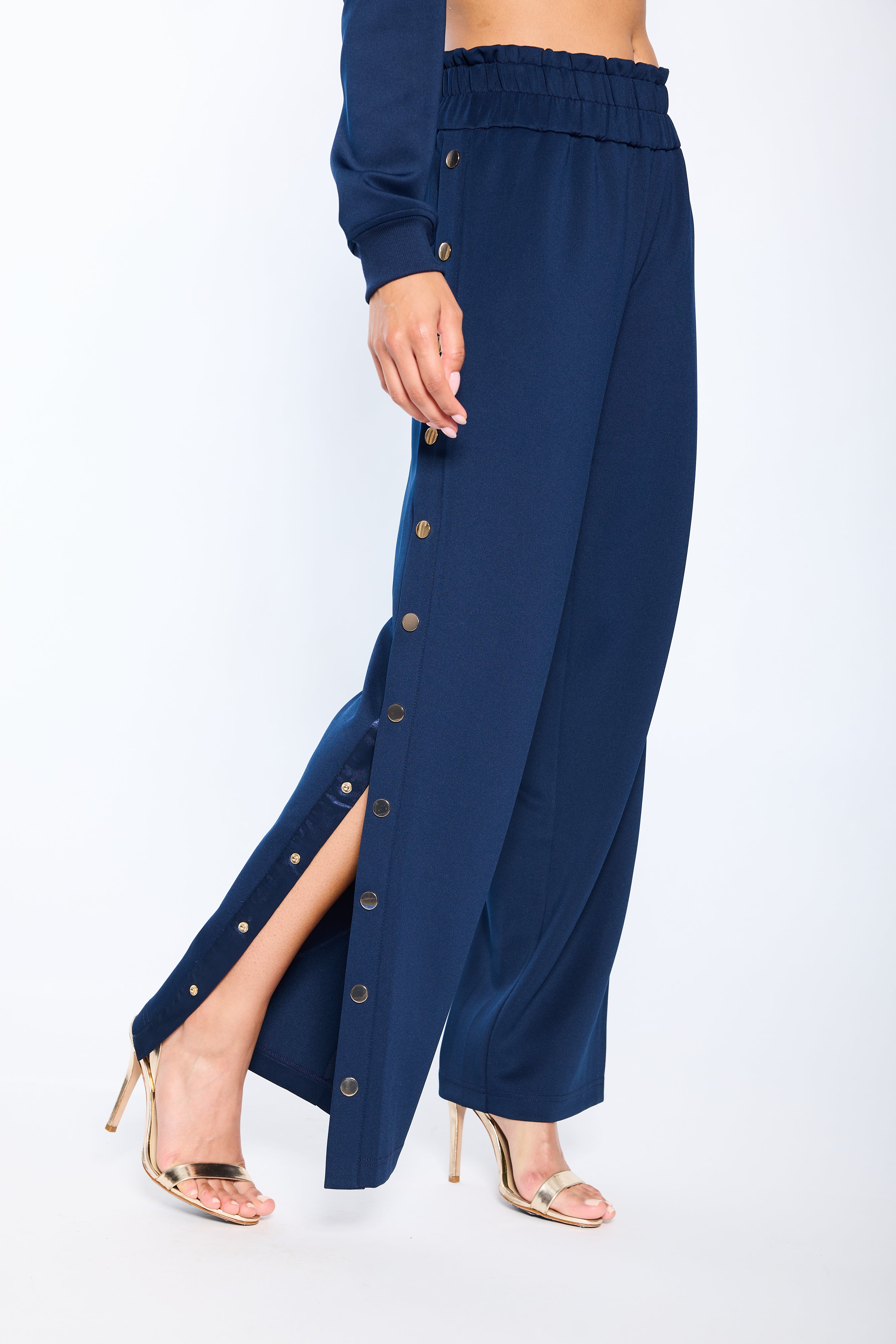 STRETCH SCUBA JERSEY 11 1/4" HIGH WAIST PANTS W/ FUNCTIONAL SNAP SIDE 30 3/4" INSEAM