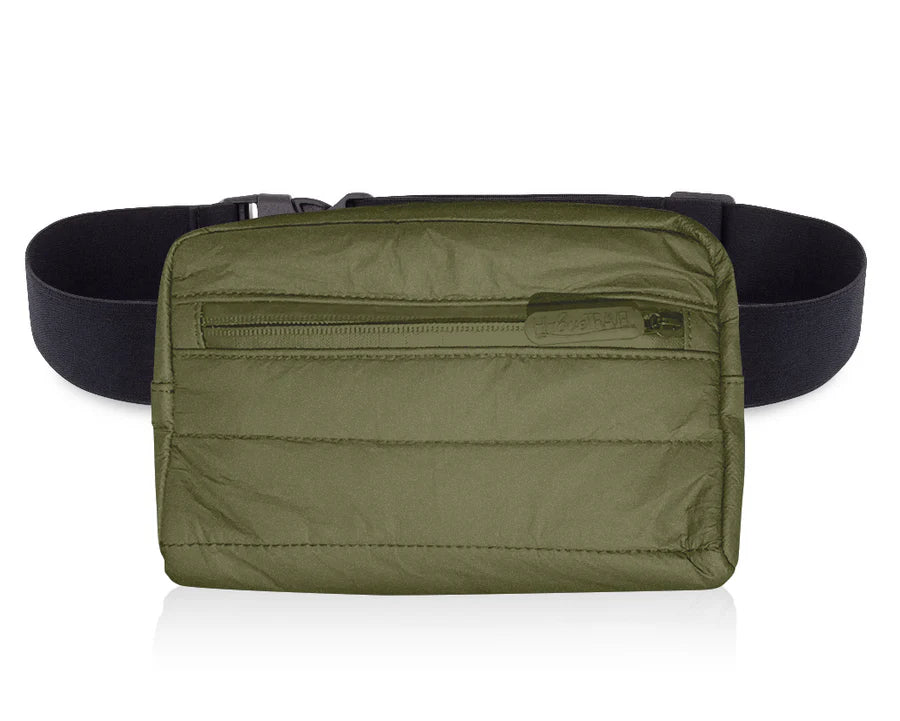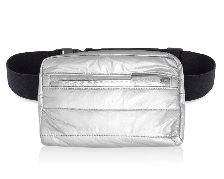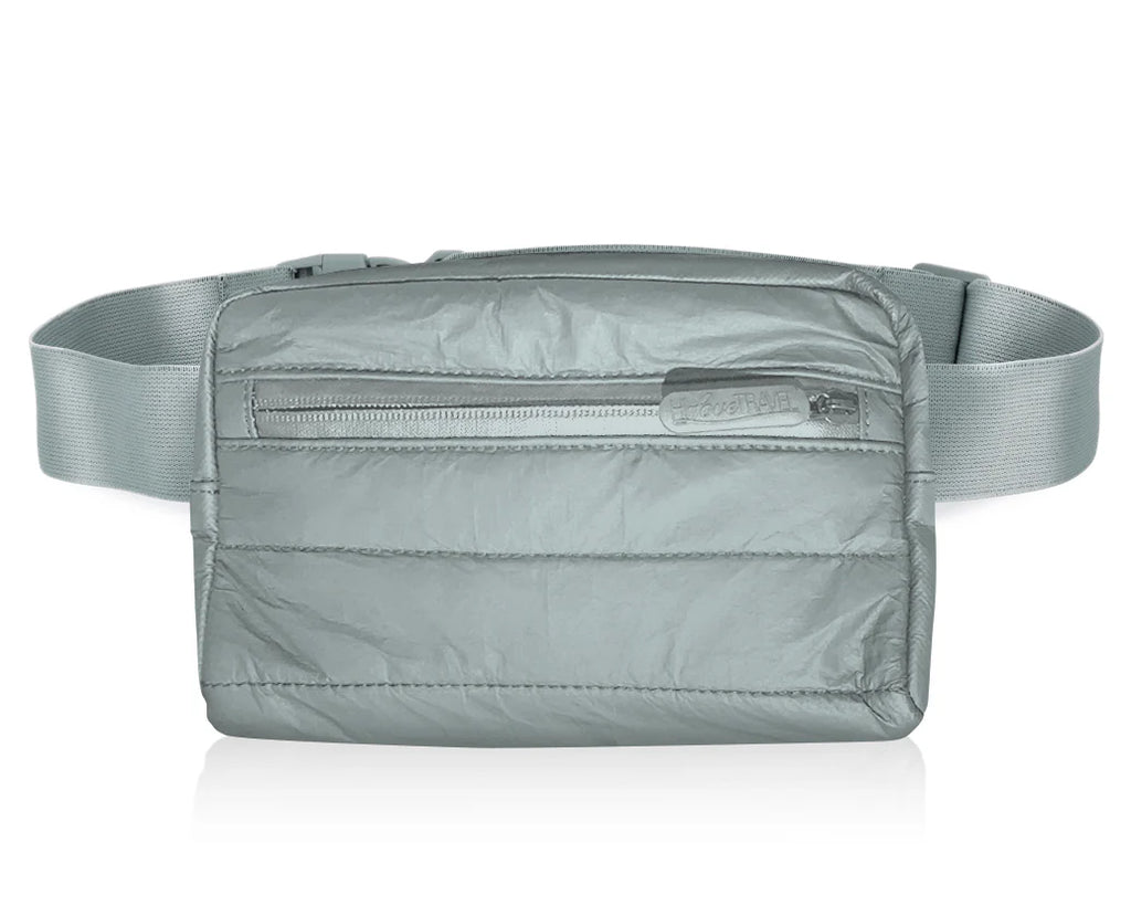 The bag that will never leave your side. Around town or the world, our plush and versatile puffer fanny pack in golden shimmer beige is designed to accompany you on all your wildest adventures!