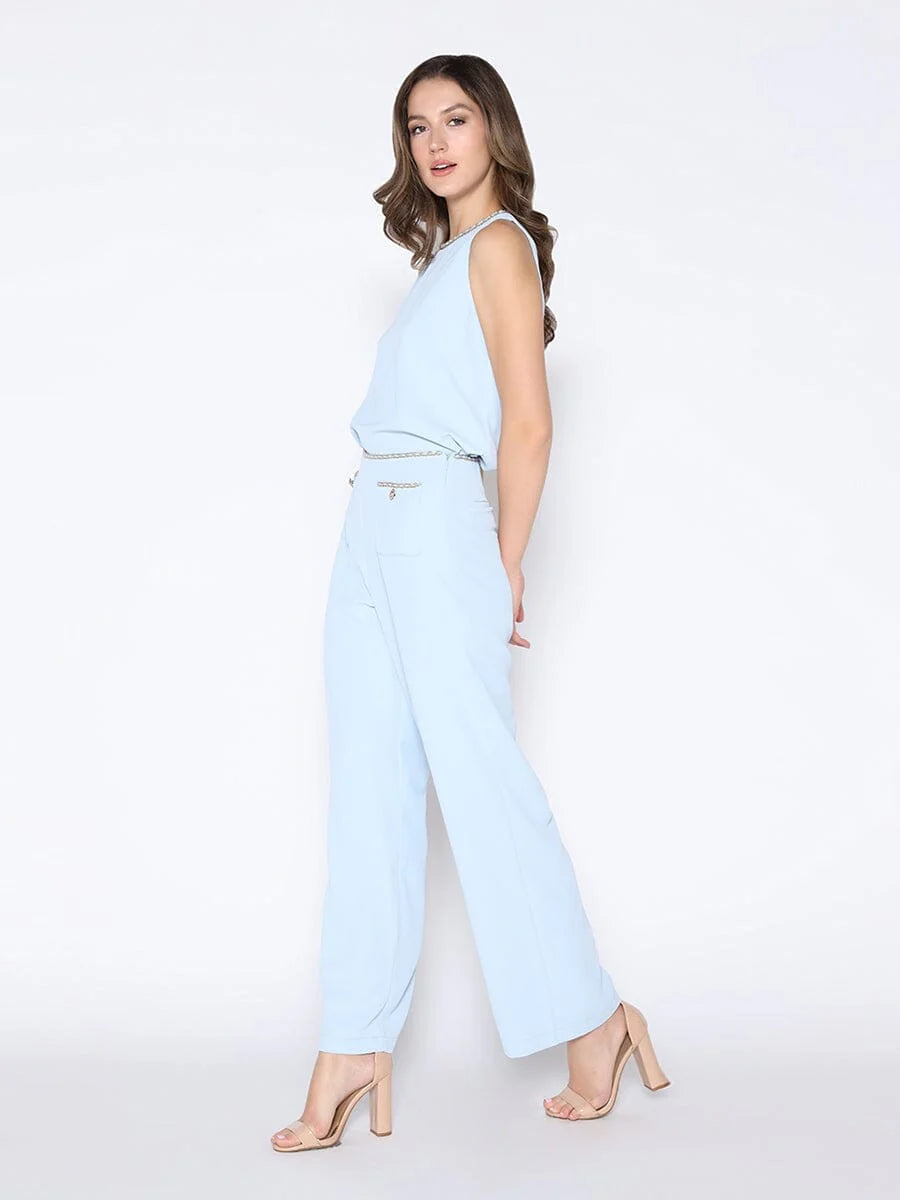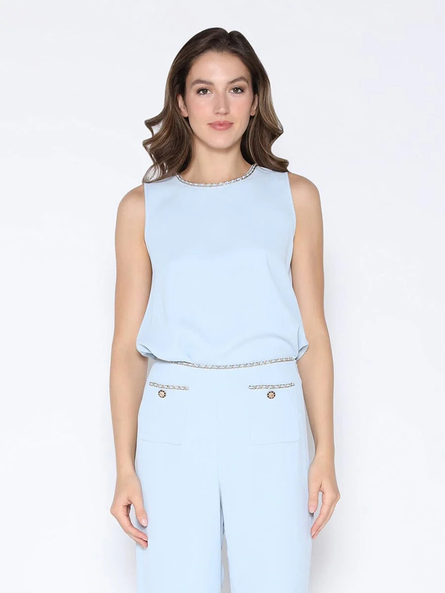 Chain Embellished Neckline Sleeveless Top