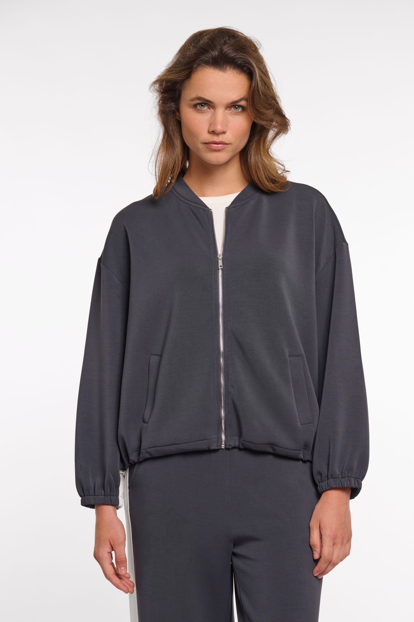 Wrap yourself in everyday elegance with this clean, bomber-inspired jacket crafted from a softly structured fabric for a smooth, refined drape. Designed with a slim stand collar, front zip closure, and discreet slip pockets, it offers a modern yet effortless silhouette. Elasticated cuffs and hem add subtle shape and comfort, making it an easy layer for both casual and polished looks.