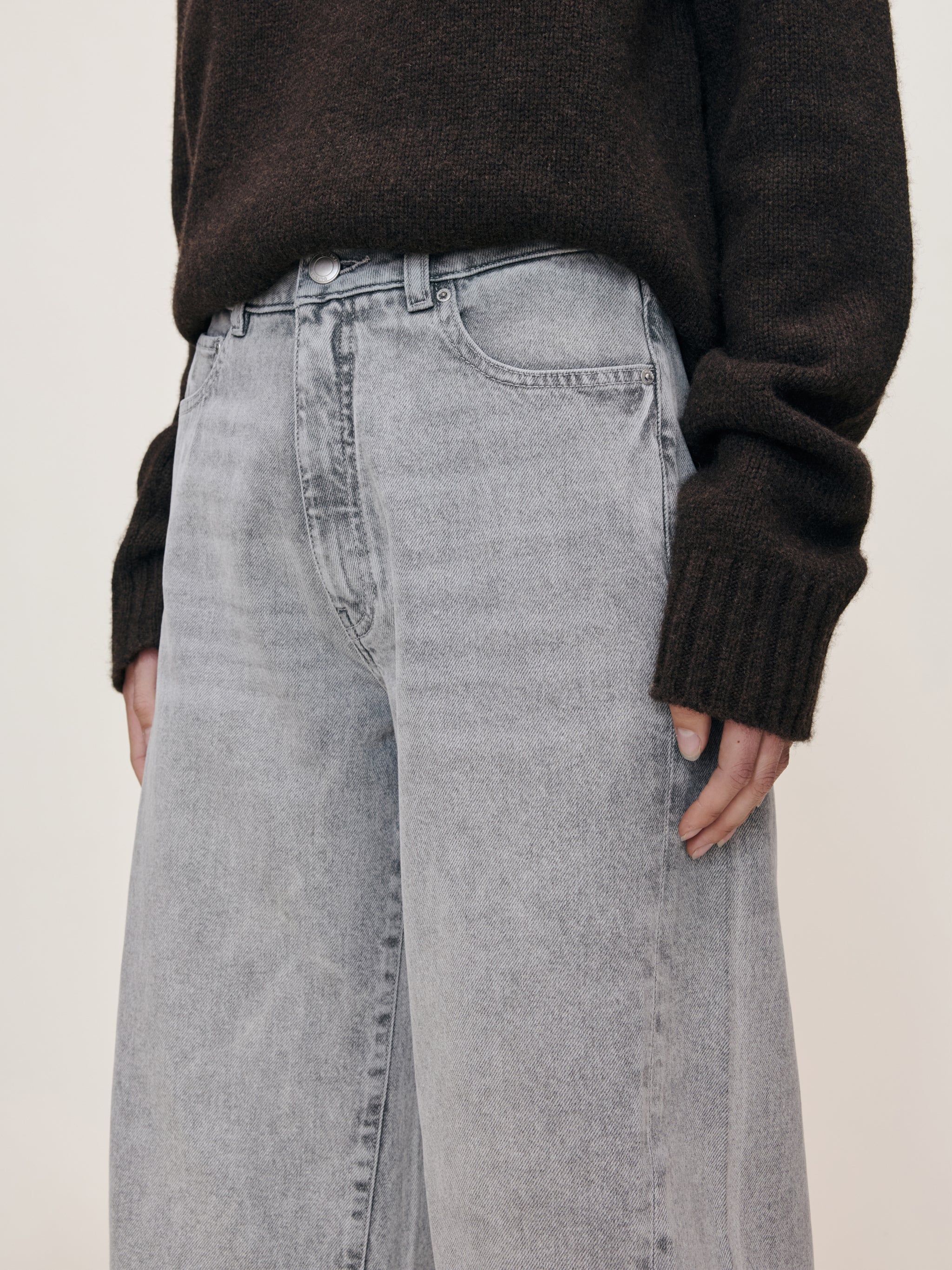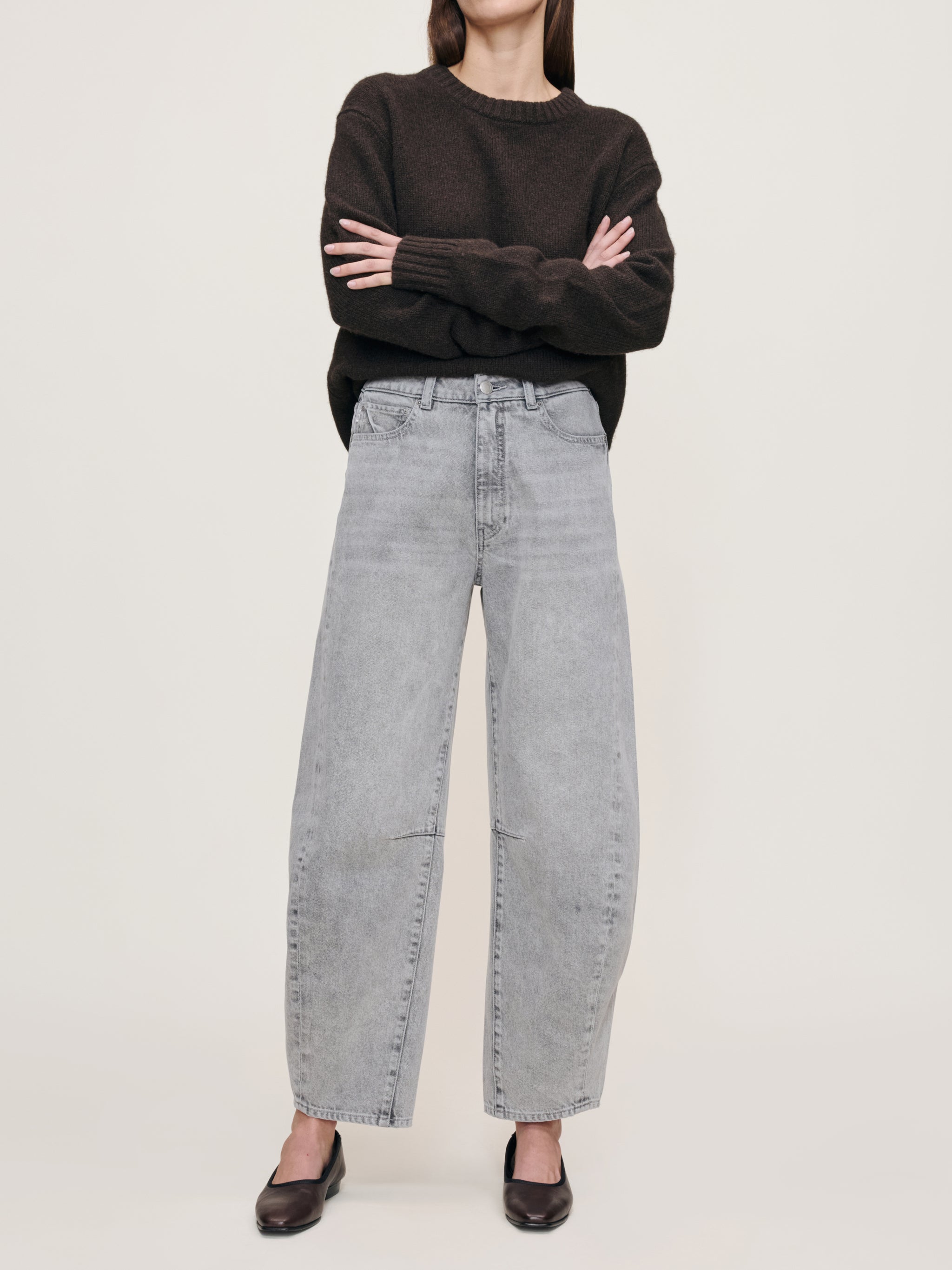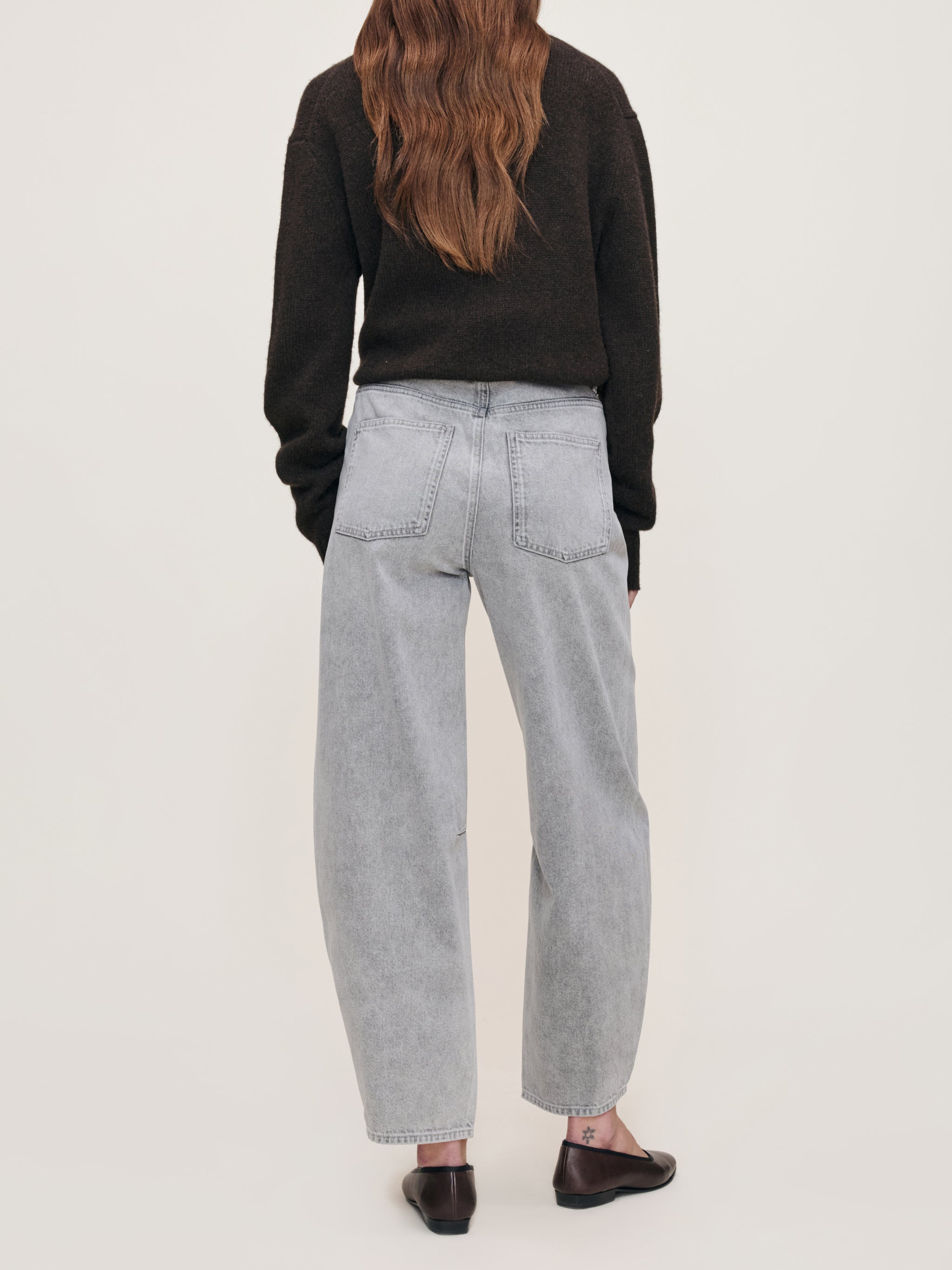 Miro is a high-rise, true barrel leg jean that is fitted at the hip with a 28" inseam, tapering at the leg. Storm Cloud is a washed light grey denim with authentic character. It features silver hardware, tonal stitching, a clean hem and an ecru back patch. Original ‘61 is a structured denim weave crafted from certified cotton that adapts to your body’s shape to become uniquely your own.