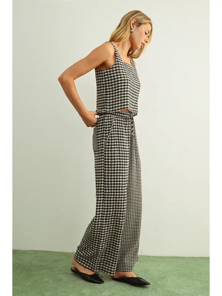 MIXED GINGHAM STRAIGHT PANTS