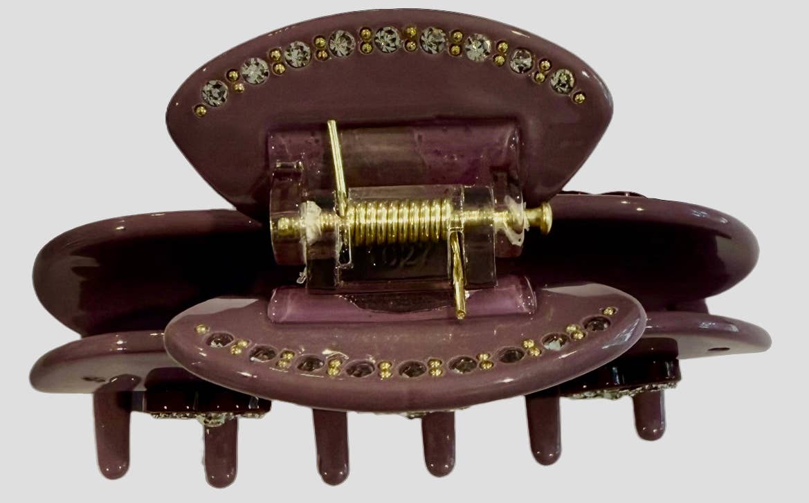 Gorgeous lilac hair clip with three rhinestone hearts, perfect for all ages