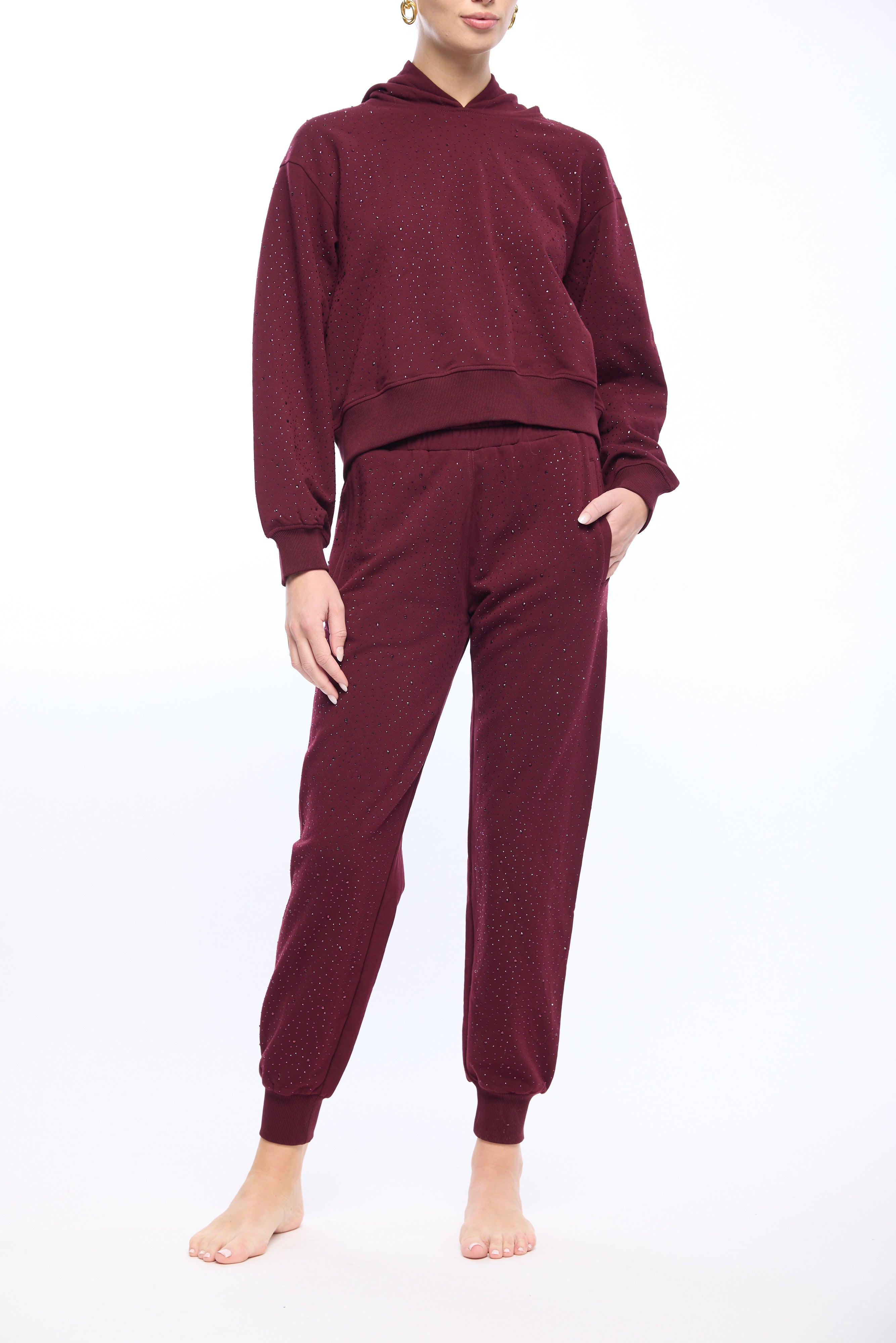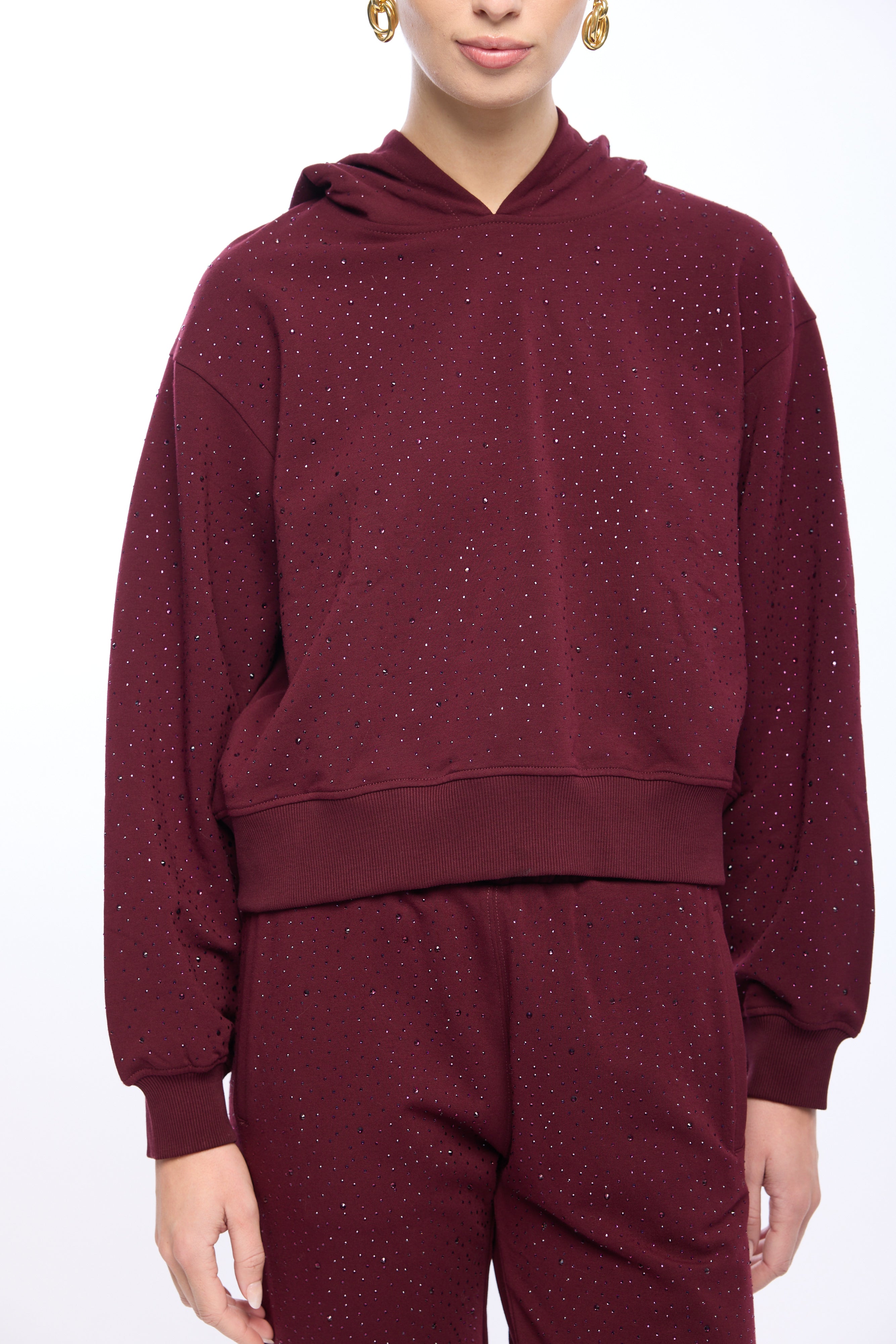 ALL-OVER COMPACT CRYSTAL EMBELLISHED BRUSHED-BACK FRENCH TERRY CROPPED HOODIE