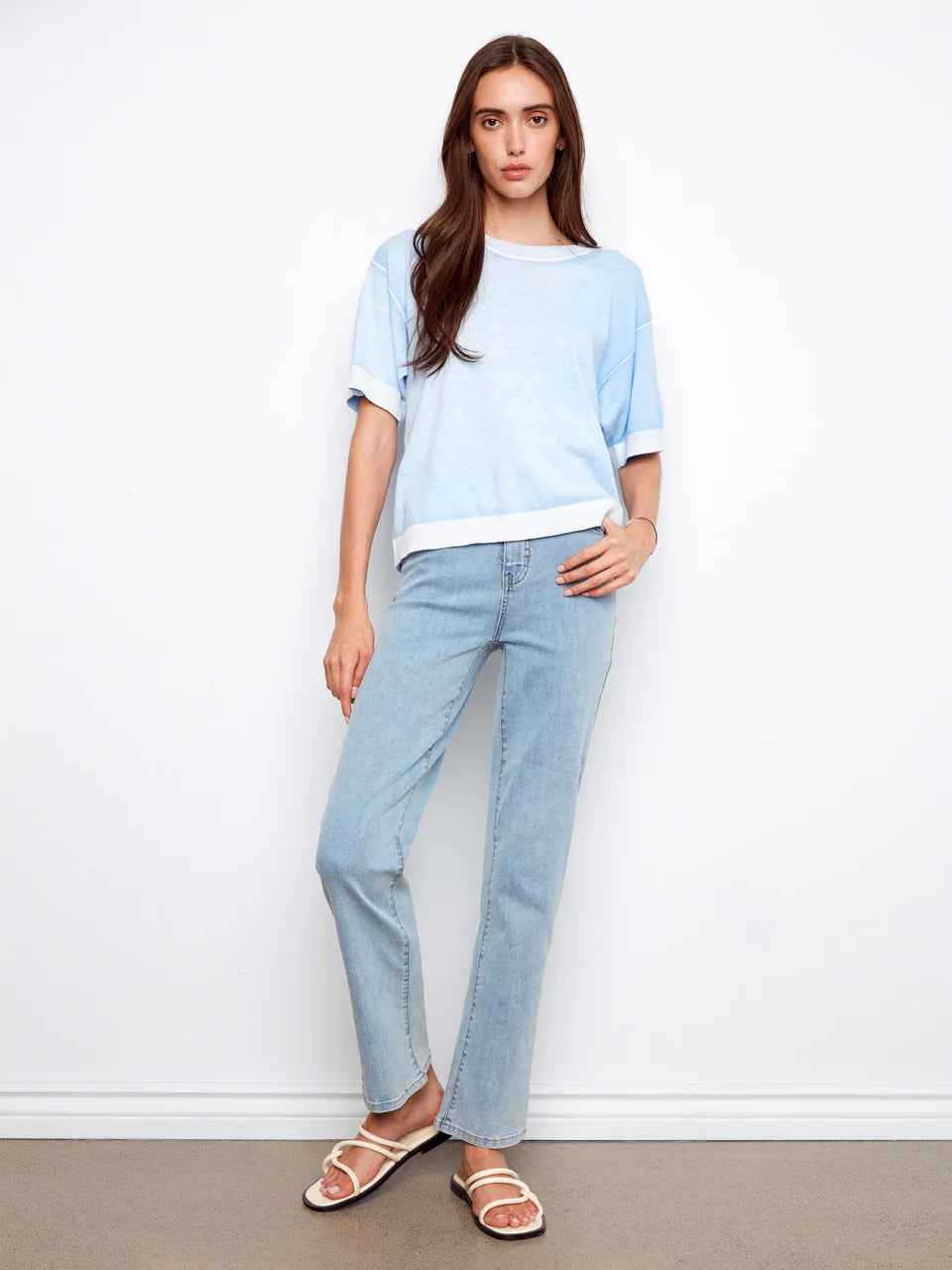 REVERSE PRINT S/S SWEATER