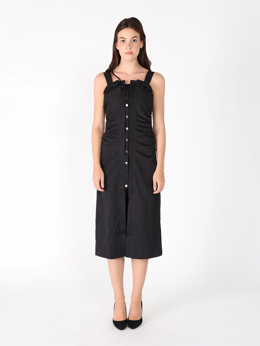 Side Gathered Front Slit Strape Dress