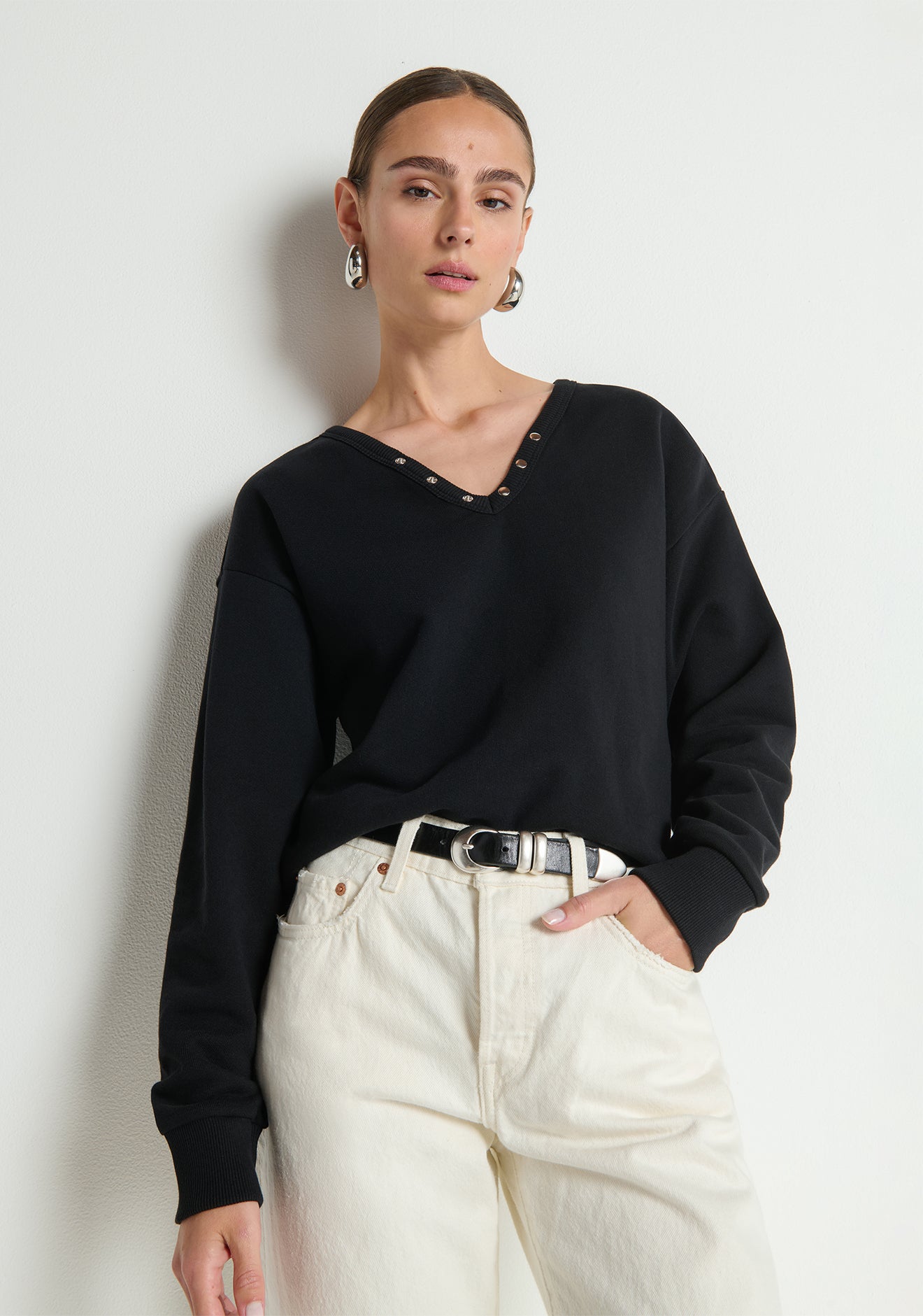 Grommet v neck sweatshirt