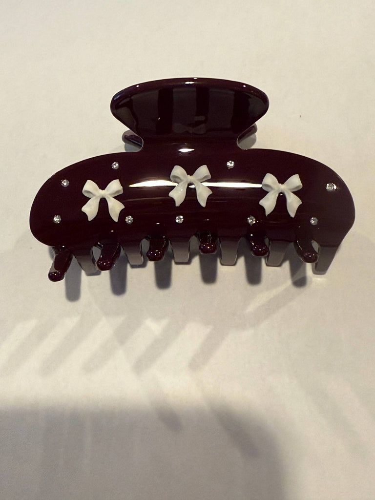 RED WINE ACRYLIC BOW AND STONE HAIR CLIP