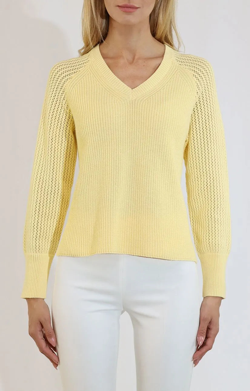 V neck pull over in a light yellow