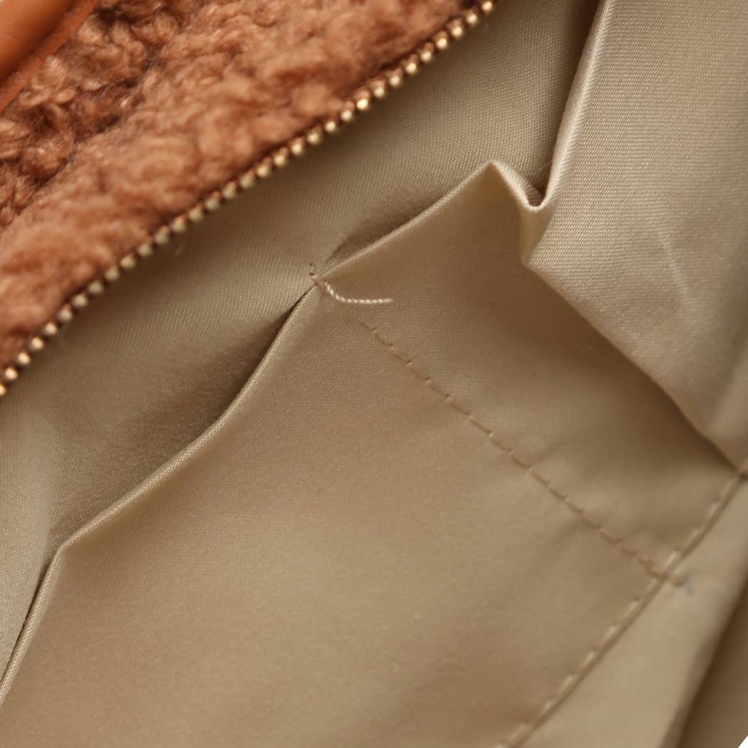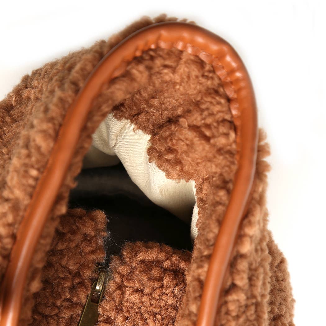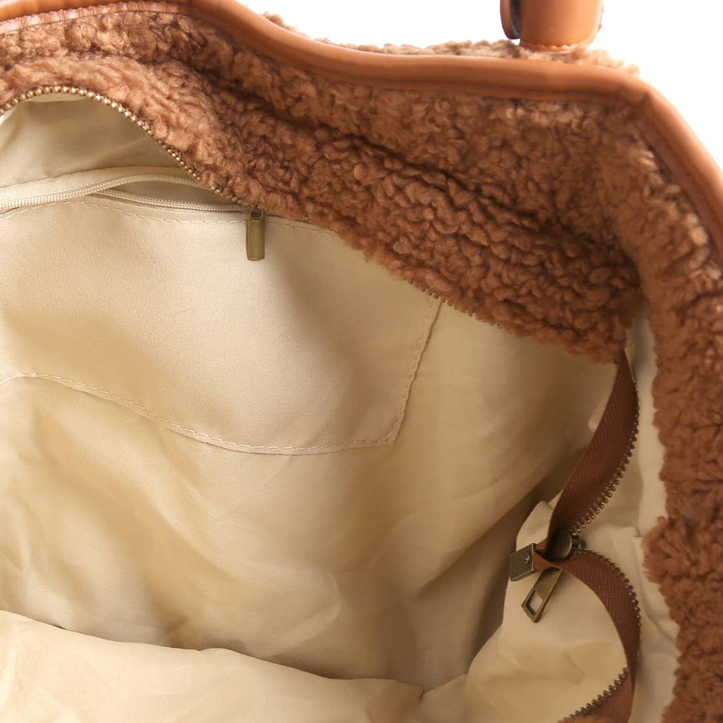 Stay stylish and cozy with this faux shearling shoulder tote bag, available in classic Camel and Black. Designed with a plush, textured exterior and smooth faux leather trim, this bag blends comfort and elegance effortlessly. Dual top handles and a detachable crossbody strap offer versatile carrying options, while the spacious interior makes it perfect for daily essentials.