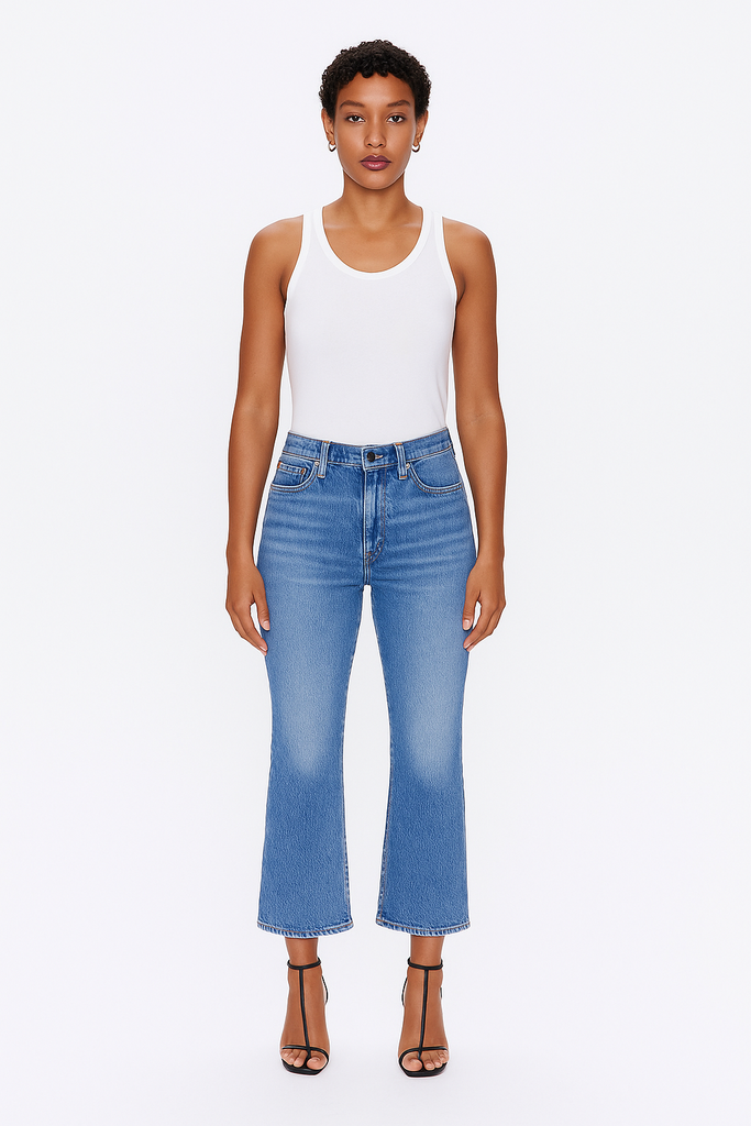 A bootcut designed to imitate your favorite pair of vintages. Crafted from our signature comfort stretch denim with a slightly wider leg, more relaxed fit, and high rise waist. Featuring a cropped, ankle length hem with a clean finish.
