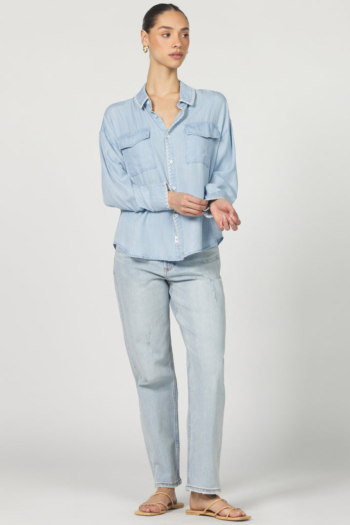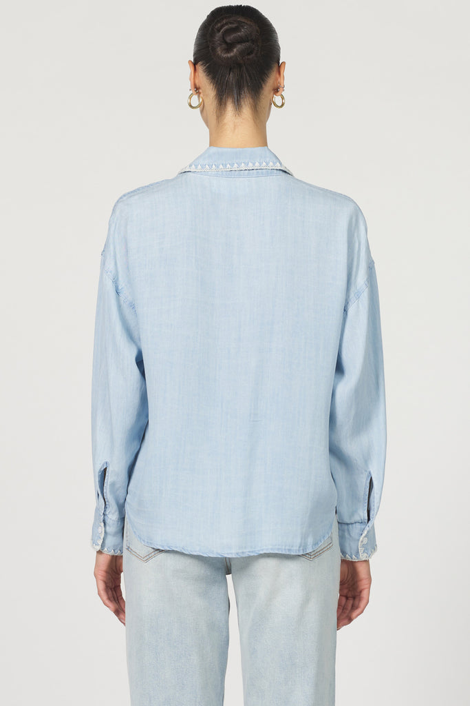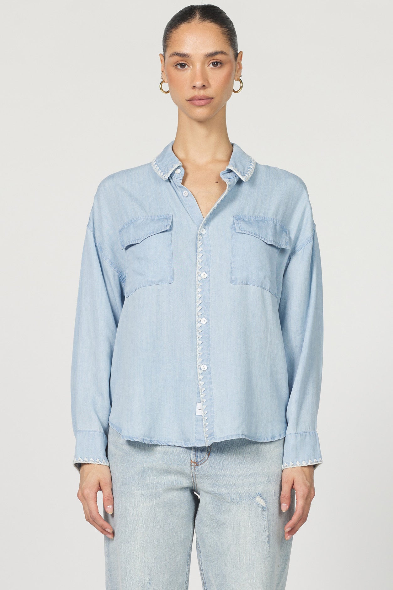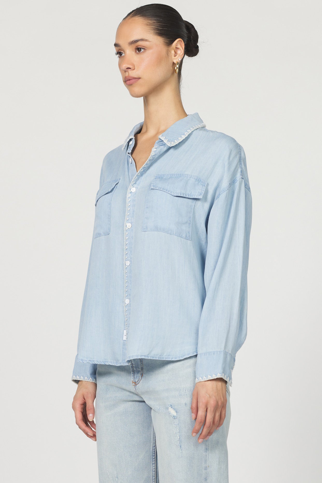 BUTTON-UP LONG SLEEVE BLANKET STITCH