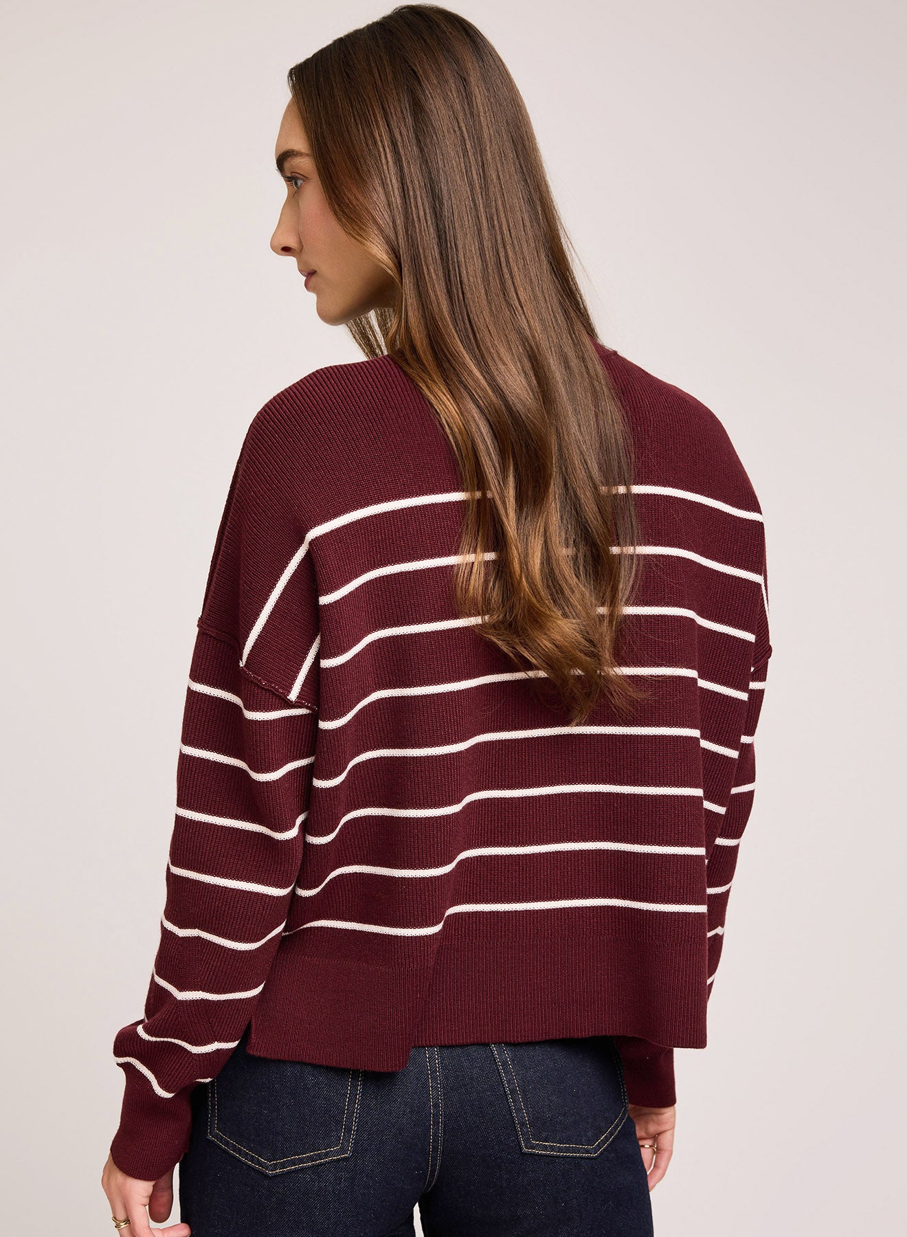 The Echo sweater is made of a super soft yarn in a half cardigan stitch. Features include exposed seam detailing and side slits for an effortless look.