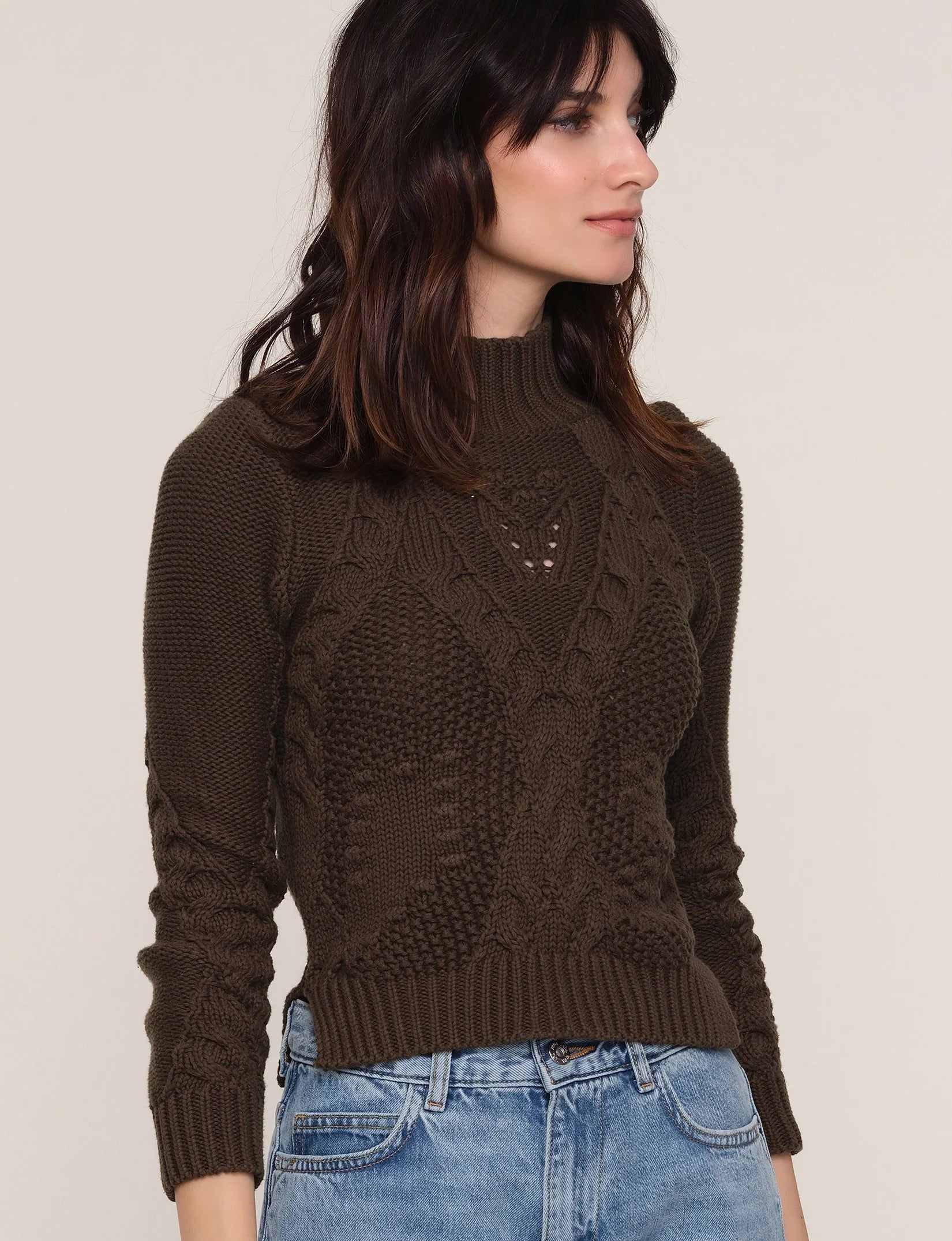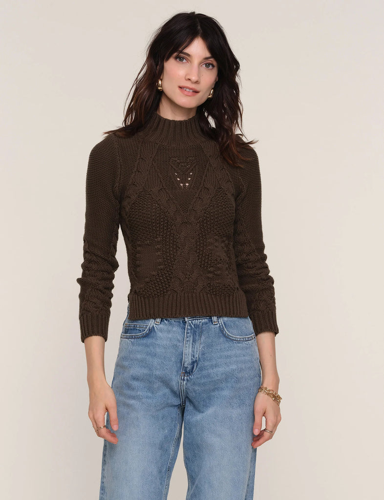 The Eulalia Sweater is a slim fit, mock neck knit. The stand-out feature is the interesting stitch detail throughout the bodice. Pair it with your favorite denim and a pair of loafers for an easy, everyday look.