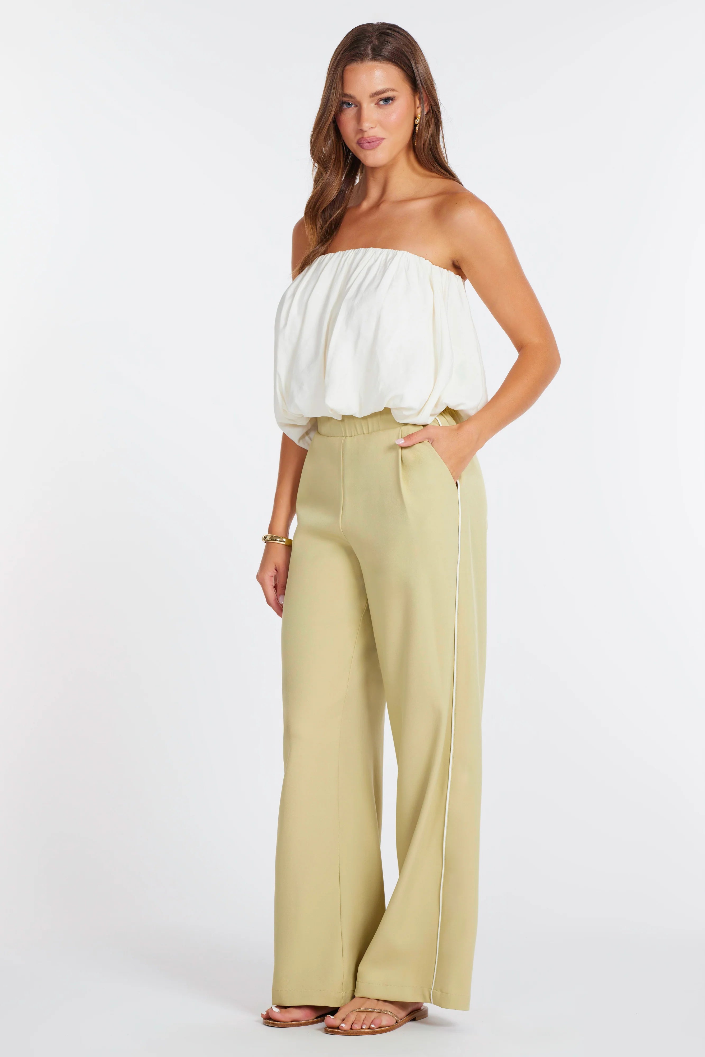 The Great Escape Pull-On Pant offers a fluid silhouette elevated with a sleek contrast side stripe, balancing tailored structure with modern ease. Style with a tonal knit or pair with minimal sandals and a crisp tank.