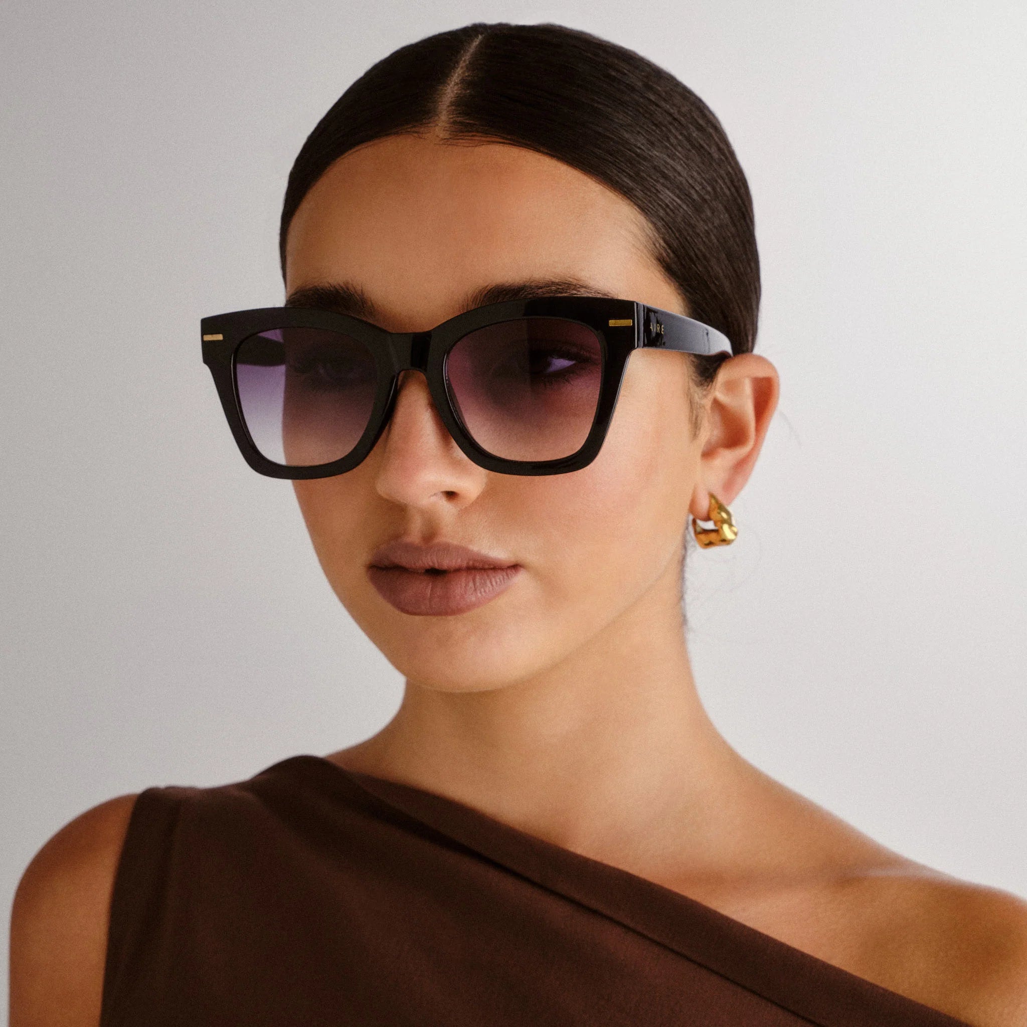 INTERGALACTIC is classic square shape. This medium size fit is designed for a contemporary feel with modern metal rivet detailing