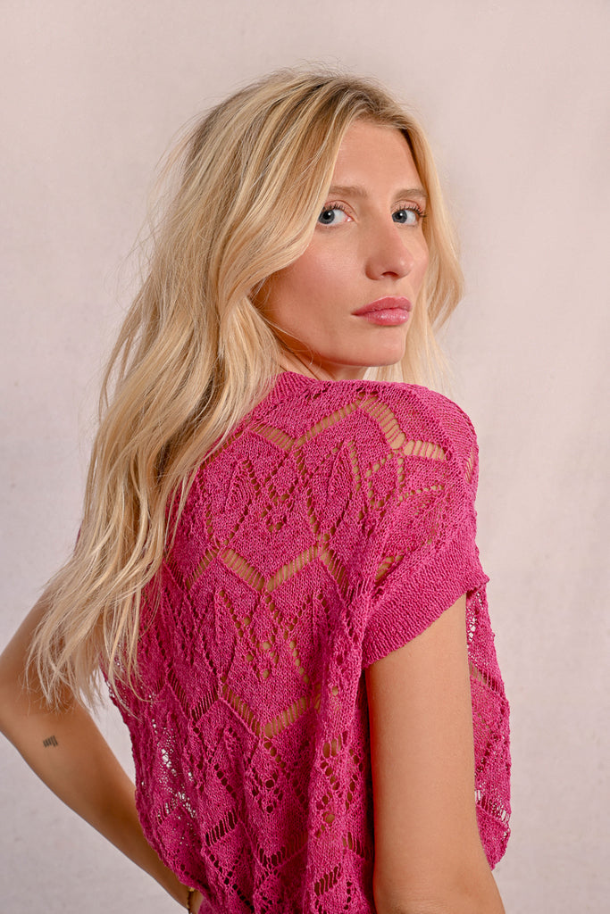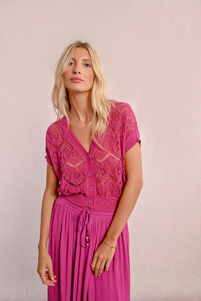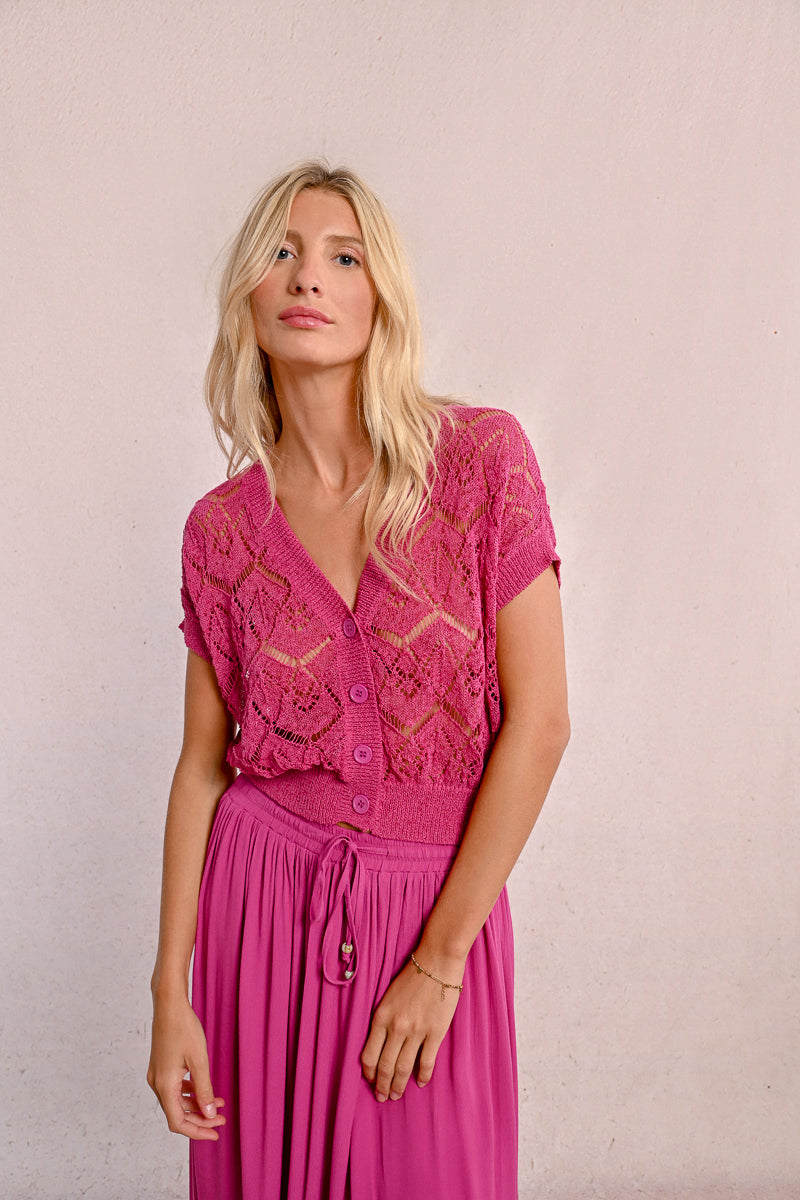 Short sleeve knit cardigan