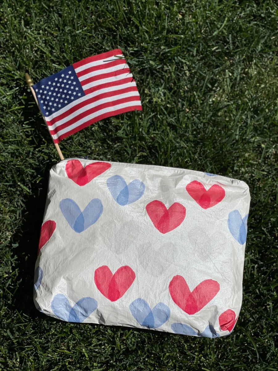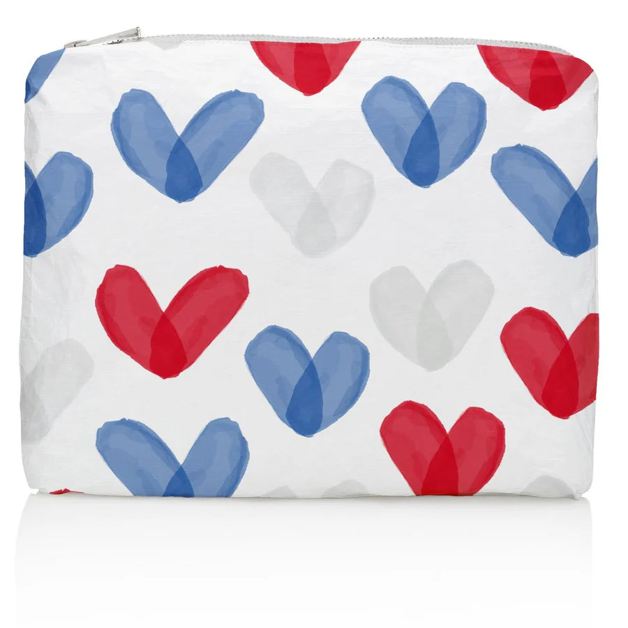 Medium Zipper Pack in the "Language of Love" Red, White, & Blue Heart Print