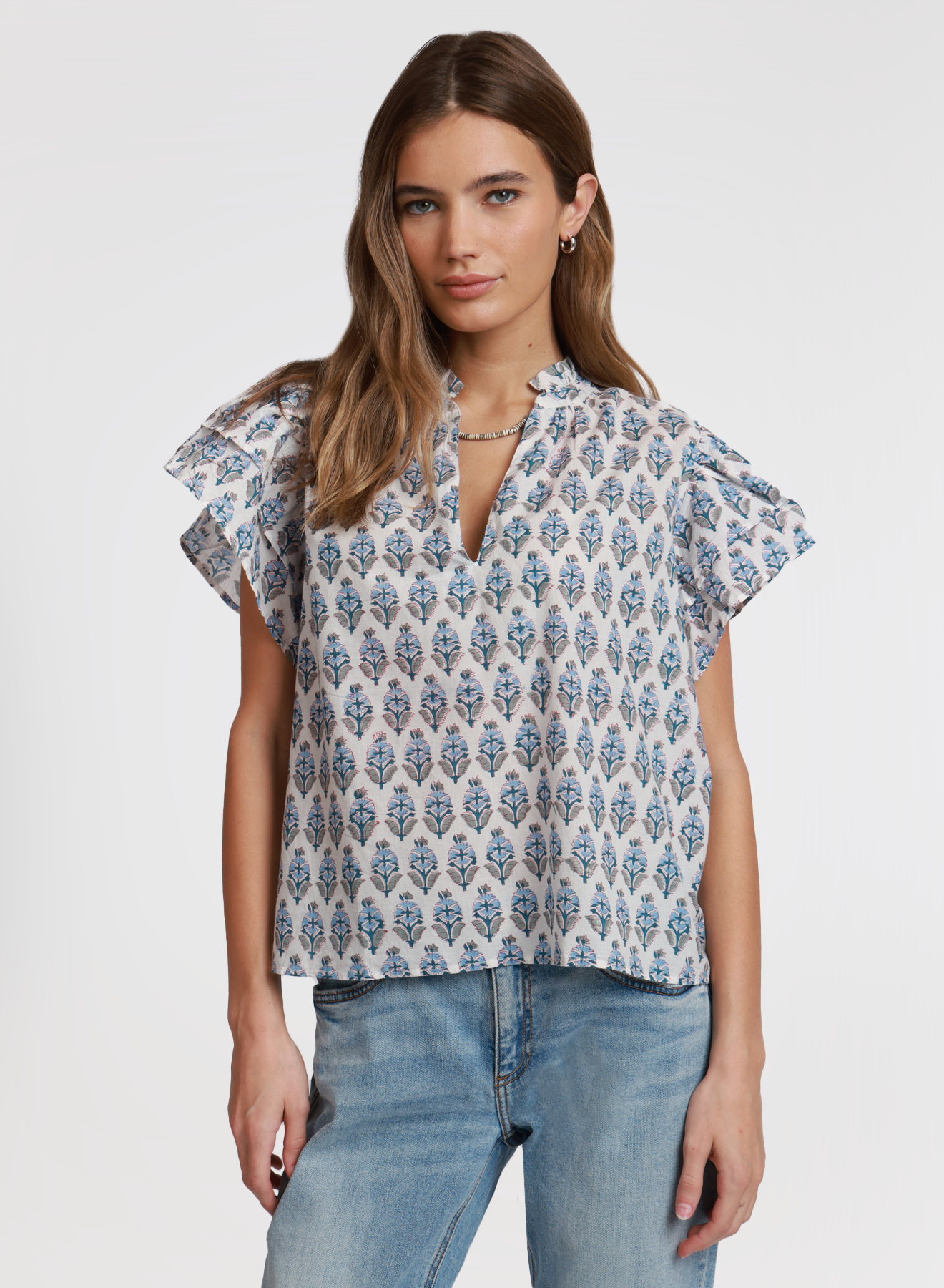 Flutter sleeve v neck top