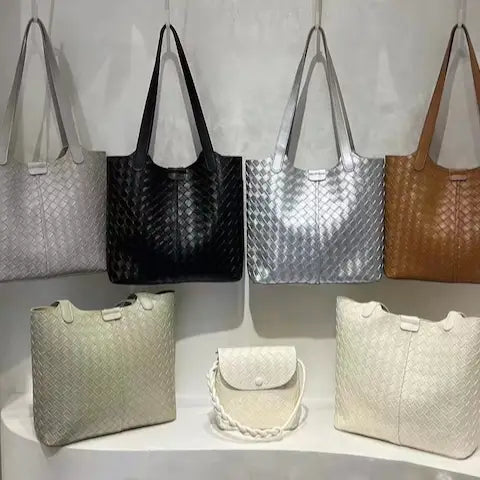 Woven Microfiber Leather Shoulder Bag + Crossbody